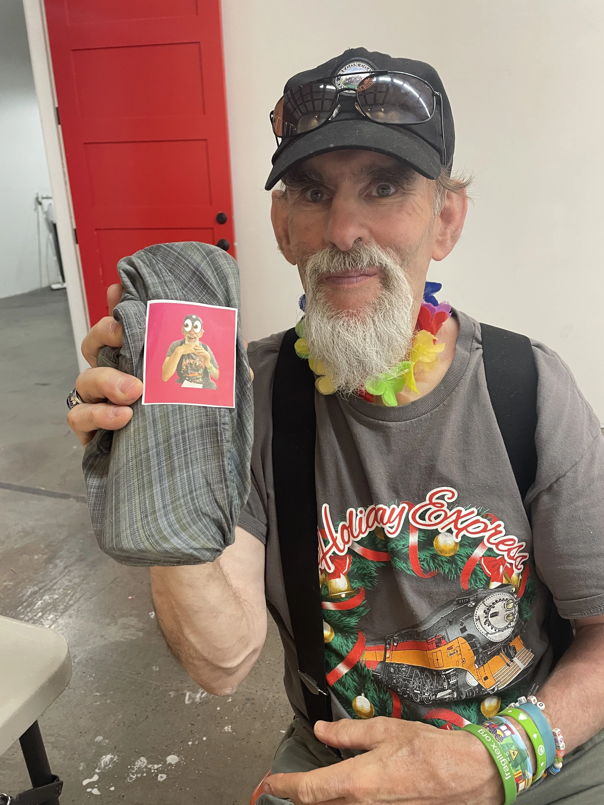 Elbow Room in a non-profit community art studio in SE Portland focused on providing material support, mentorship and meaningful exhibition opportunities for artists with intellectual and developmental disabilities. Elbow Room supports engagement with the art community in many ways, one of which is allowing local artists to work with participants as an artist in residence.